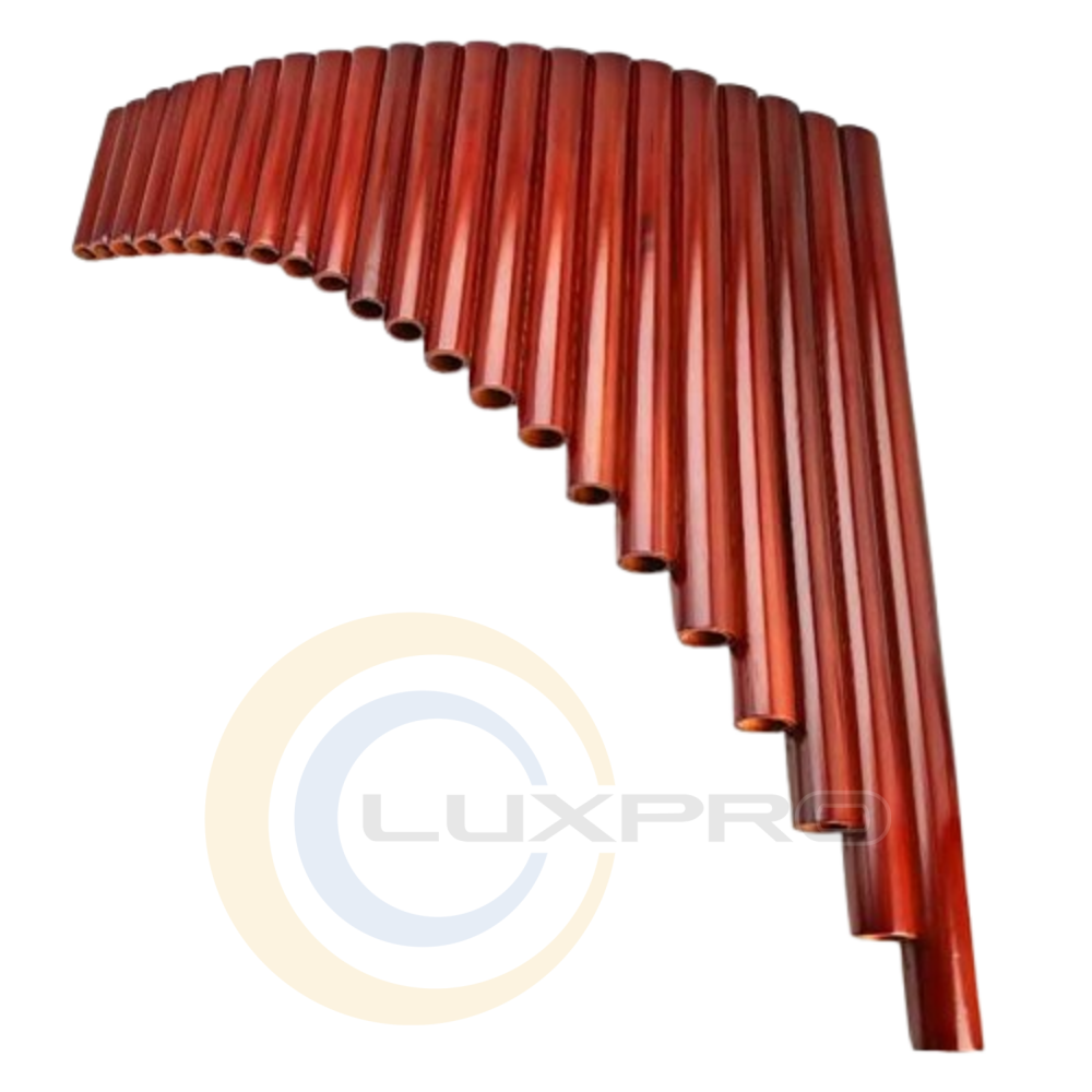Корпус панфлейты имеет естественный бамбуковый сорт с коричневым оттенком, что подчеркивает органичность и эстетику изделия. Оттенок выбран так, чтобы подчеркнуть натуральную текстуру материала: легкая глянцевая обработка сохраняет матовость бамбука, придавая деликатный блеск на свете. Маркировка выполнена аккуратно и заметно, не нарушает натуральный вид, а наоборот — дополняет его профессионализм.