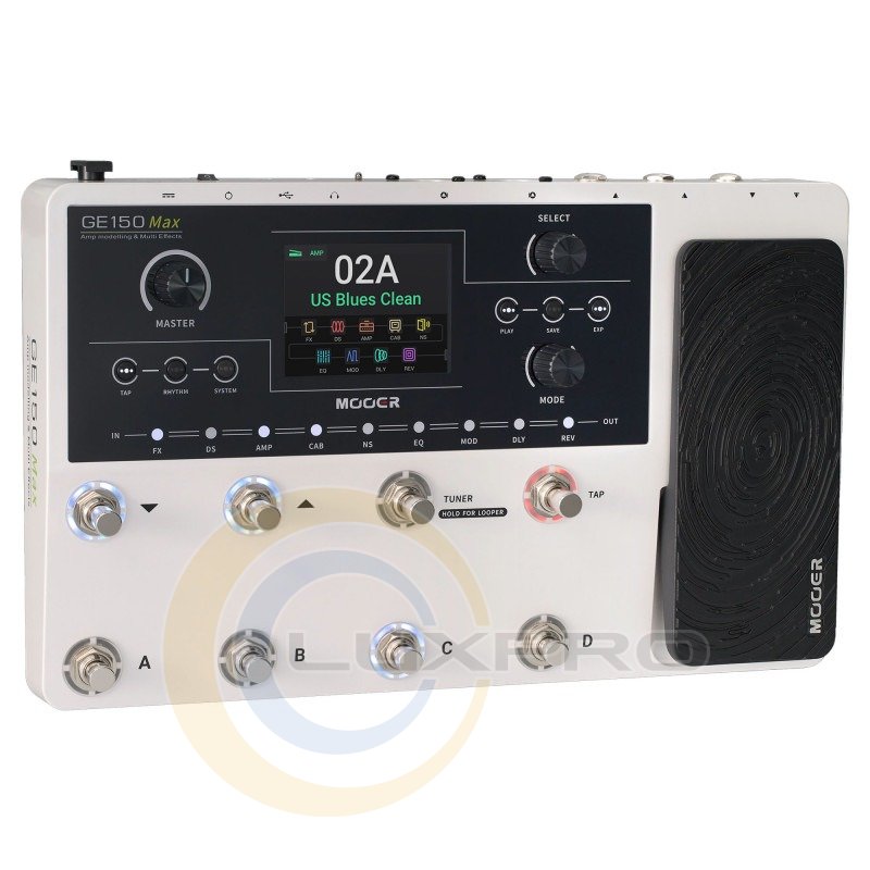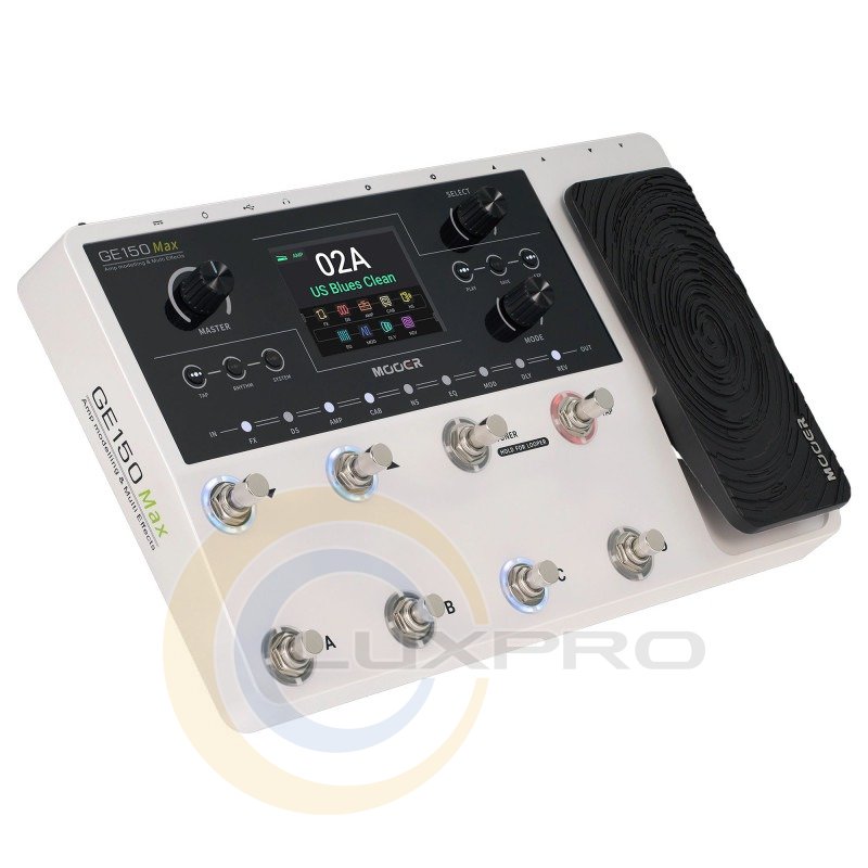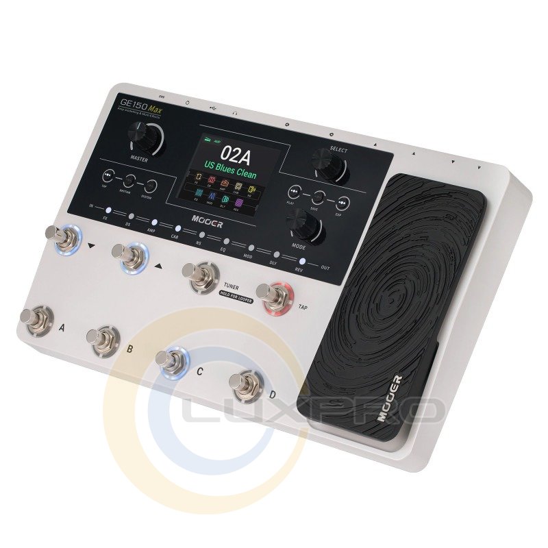 По сравнению с GE150Plus и GE150 Pro, GE150 Max оснащен восемью ножными переключателями, предлагающими более комплексную логику управления. Эти восемь ножных переключателей позволяют одновременно переключаться между четырьмя пресетами, управлять одной педалью CTRL, переключать банки тембров, включать тюнер и управлять Tap Tempo. Кроме того, серия GE150 Max отличается совершенно новым дизайном пользовательского интерфейса и расположением кнопок. Кроме увеличенных экрана и панелиь, добавлены несколько функциональных кнопок, что обеспечивает удобство использования и наглядность.