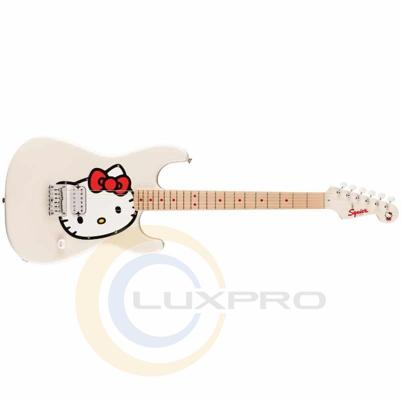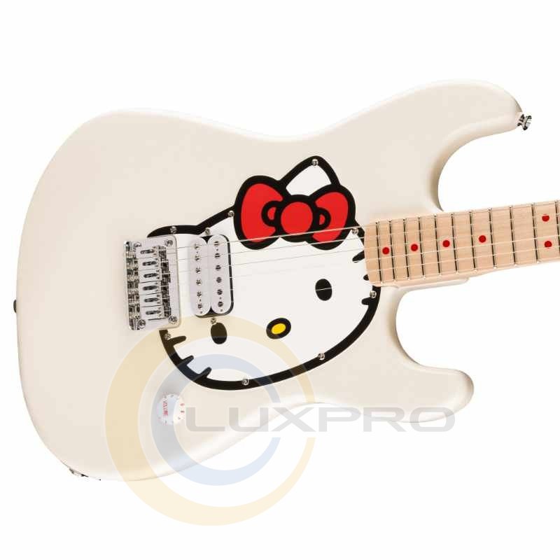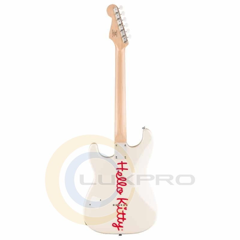 Электрогитара HELLO KITTY STRATOCASTER WHITE. В честь 50-летия Hello Kitty® эта лимитированная серия Stratocaster® является вариацией на тему оригинальной модели Hello Kitty, которую Squier® представил в начале 2000-х годов, сочетая качество и функции нового уровня с деталями дизайна Hello Kitty, что, несомненно, станет следующей культовой коллекцией. Благодаря удобному грифу в форме буквы «C» и культовому контурному корпусу, эта Strat® обеспечивает потрясающее удобство игры и невероятно универсальный звук благодаря хамбакеру Fender Designed™. В комплект входит шикарная сумка Hello Kitty.