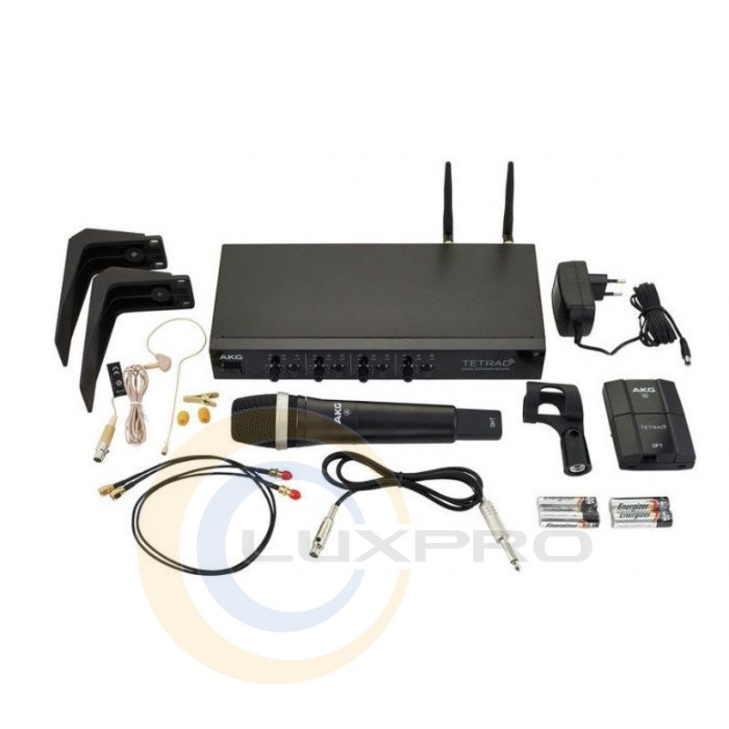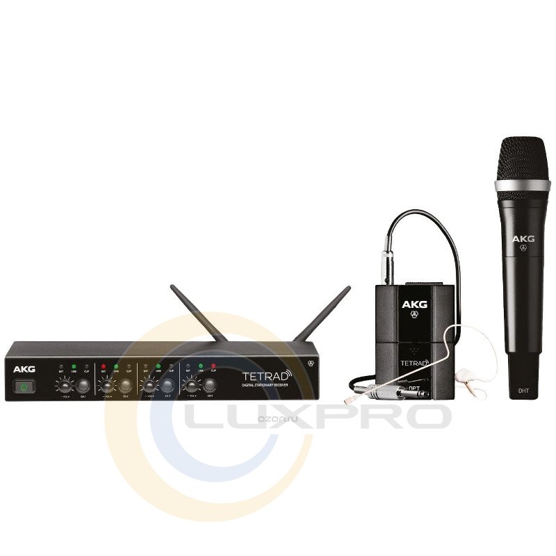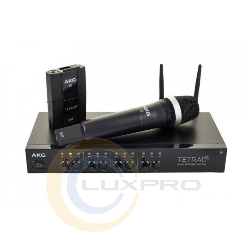 Цифровая радиосистема: 4-канальный приёмник DSR Tetrad, ручной передатчик DHT Tetrad D5, поясной передатчик DPT Tetrad, микрофон C111LP, гитарный кабель MKG L в комплекте