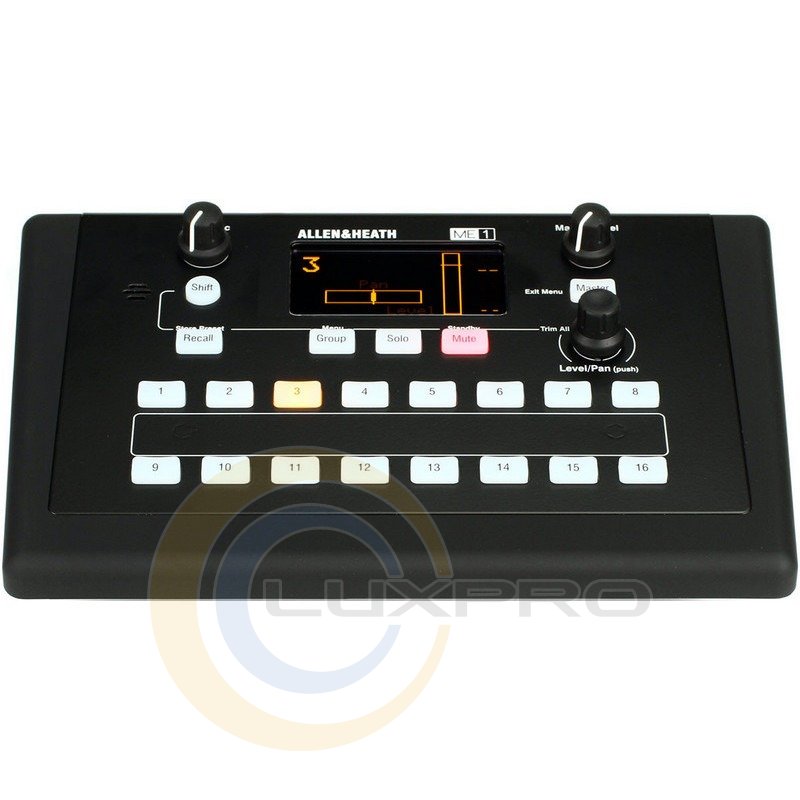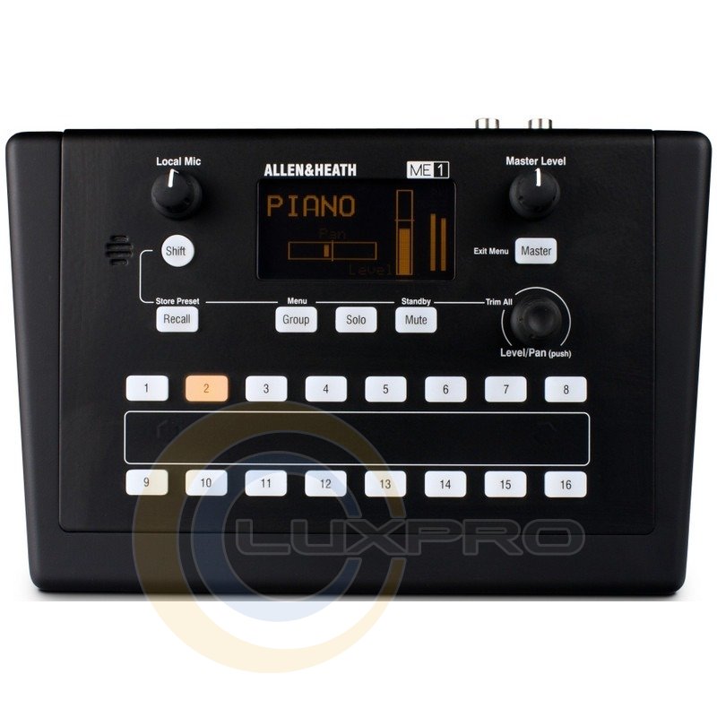 Система персонального мониторинга ME-1. С системой ALLEN & HEATH ME-1 можно управлять до 40 источников сигнала. Экран с регулировкой яркости легко читаем, как на темных, так и на ярких сценах. Объединяйте несколько устройств и источник сигнала посредством Dante, EtherSound или MADI. Также работает с другими системами персонального мониторинга.
