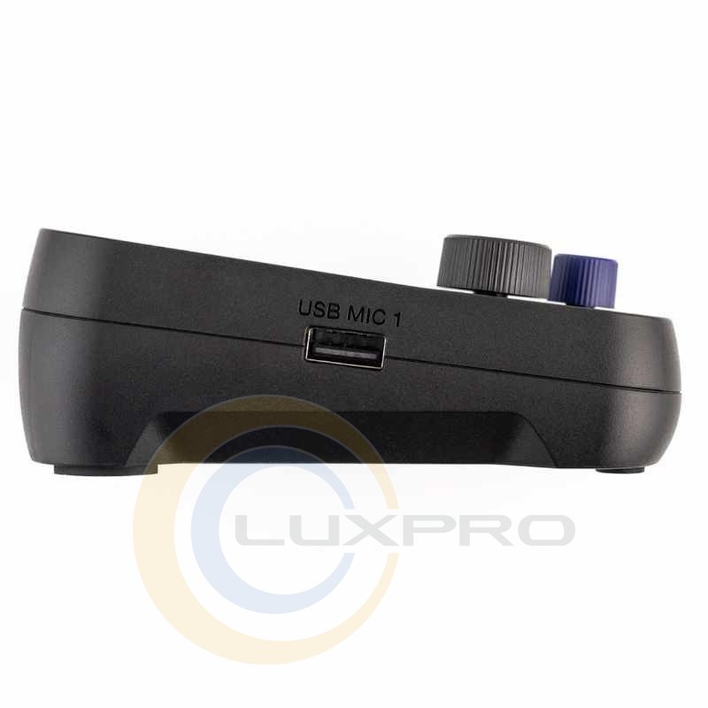 - USB-порты: 2 × USB Type-A для микрофонов, 1 × USB-C для подключения к компьютеру и зарядки;