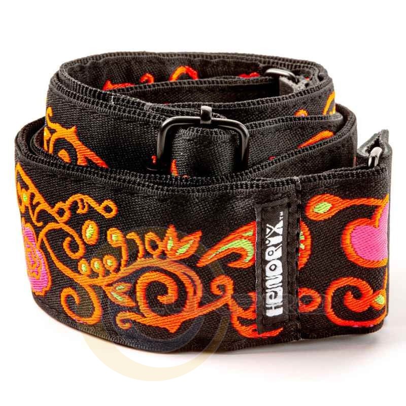 Гитарный ремень JH23. Его дизайн вдохновлен яркими тай-дай узорами и атмосферой экспериментального звучания, сформировавших культурный код целого поколения. Жаккардовая плетеная ткань выглядит стильно и премиально, а главная изюминка – люминесцентный эффект под ультрафиолетом, что делает ремень особенно зрелищным на сцене.