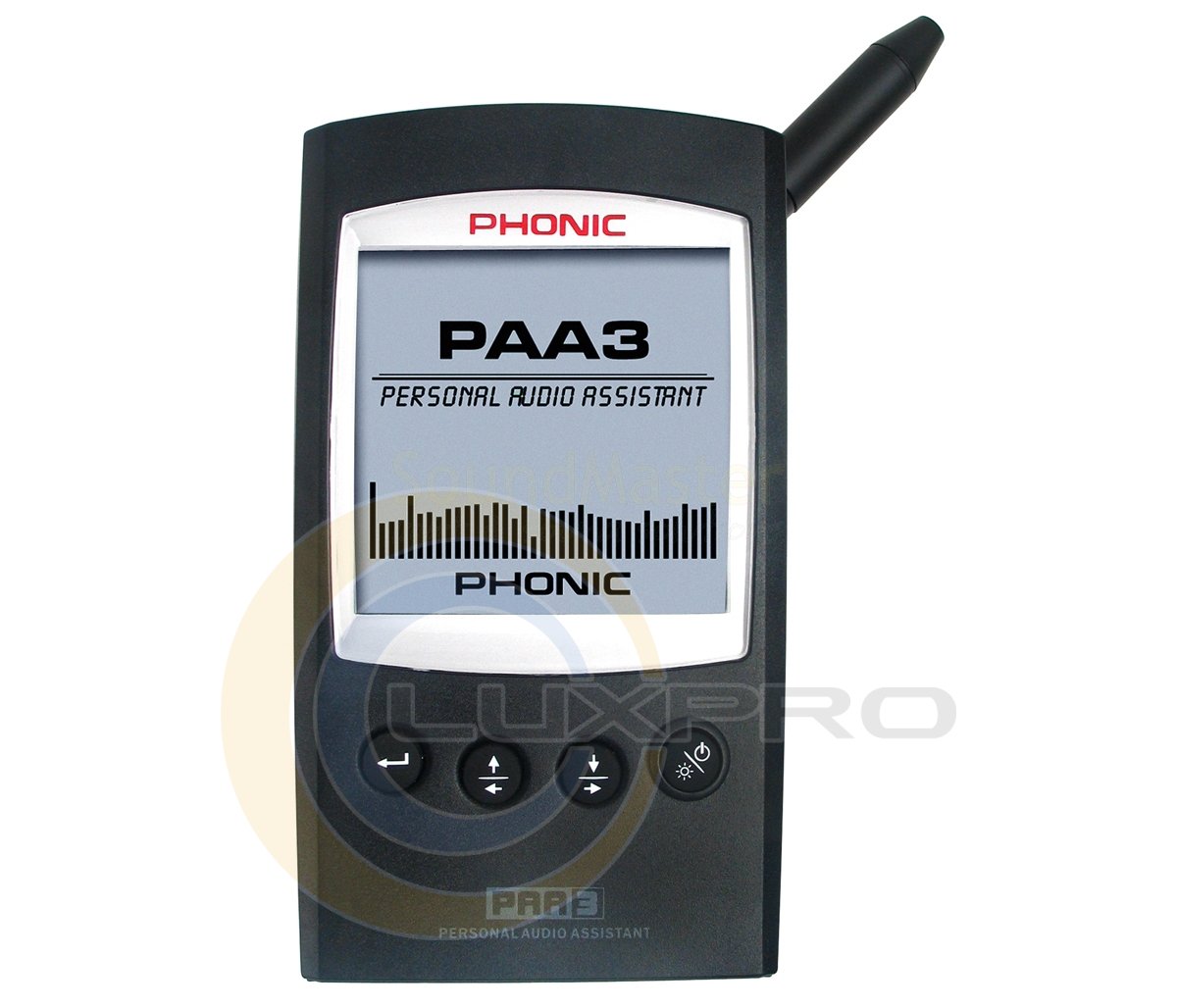 PHONIC PAA 3X - анализатор спектра, не имеющий аналогов в своей ценовой категории, работающий в реальном времени. Это небольшой по размерам прибор величиной с ладонь совмещает в себе возможности сразу нескольких различных приборов. PHONIC PAA 3X в первую очередь, анализатор спектра, измеритель звукового давления, генератор шумов, проверка фазировки акустических систем, и в отличие от своего предшественника PAA-2, имеет дополнительную функцию измерения времени реверберации и USB порт для подключения к ПК.Все функции и меню PHONIC PAA 3X становятся легкодоступными, посредством всего 3-х эргономичных клавиш. USB порт еще с большей непринужденностью позволит пользователю сохранить или загрузить информацию с компьютера. Большой ЖК дисплей имеет подсветку, которую можно включить при работе в затемненных помещениях. Семи часовая продолжительность работы батарей делает PHONIC PAA 3X незаменимым помощником любого звукоинженера.Характеристики: