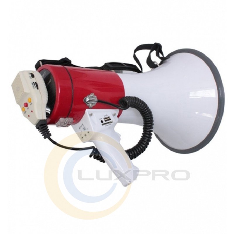 Мощный, оснащенный всем необходимым мегафон MEGA60USB-BT с прочным корпусом из АБС-пластика и встроенной литиевой батареей.