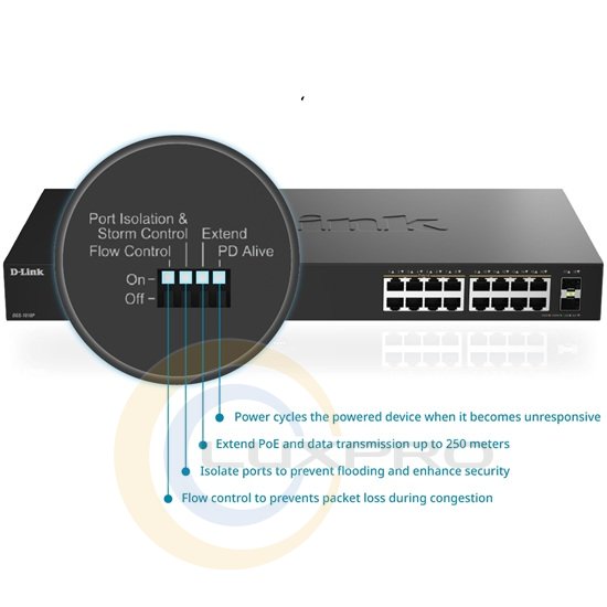 Коммутатор DGS-1018P 16x1GE PoE+, 240Вт, 30Вт/порт, Неуправляемый выбрать и приобрести от известного производителя D-Link по доступной цене в интернет магазине музыкального оборудования