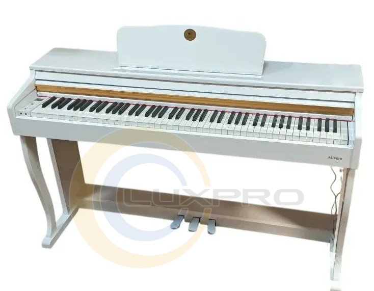 Alfabeto Allegro оснащена расширенной библиотекой из 128 тембров и 100 ритмичных сопровождений, что открывает широкие возможности для аранжировки и экспериментов со звучанием. Поддержка Bluetooth в двух режимах позволяет использовать инструмент в качестве беспроводной акустической системы, а также взаимодействовать с обучающими и музыкальными приложениями через передачу MIDI-данных. Встроенный рекордер позволяет записывать до 5000 нот, анализировать свою игру и отслеживать прогресс. Для наибольшего удобства пианино снабжено цветным LCD-дисплеем и широким набором интерфейсов подключения. Два выхода для наушников позволяют заниматься в тишине или играть вдвоем, не беспокоя окружающих. Наличие порта USB, аудиовходов и выходов обеспечивает простую интеграцию с компьютером, студийным оборудованием и внешними акустическими системами. Полноценный блок из трех педалей – сустейн, состенут и софт – гарантирует точный контроль артикуляции и динамики исполнения.