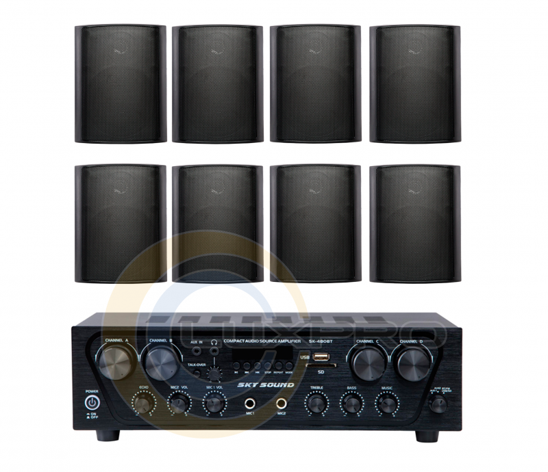 Акустический комплект SKY SOUND SKW-4808NS BLACK – это профессиональный акустический комплект озвучивания, включающий восемь настенных колонок и четырехканальный усилитель мощности, предназначенный для музыкальной и языковой трансляции в кафе, офисах или других помещениях среднего размера. Система обеспечивает широкий частотный диапазон и высокий уровень чувствительности, что гарантирует четкое насыщенное звучание фона или объявлений в ваших помещениях.