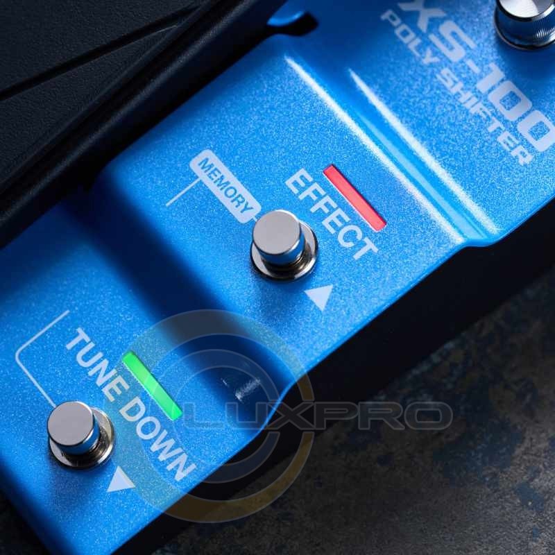 Гитарная педаль XS-100 Poly Shifter. XS-100 предлагает широкий диапазон смещения — до четырёх октав вверх или вниз, что позволяет создавать плотные гармонии, эффекты детюна, двойного звучания или полное транспонирование партии. Педаль также может работать в режиме моментального сдвига тона (эффект whammy), плавного изменения или фиксированных шагов, имитируя звучание синтезаторов или педальных гитарных систем.
