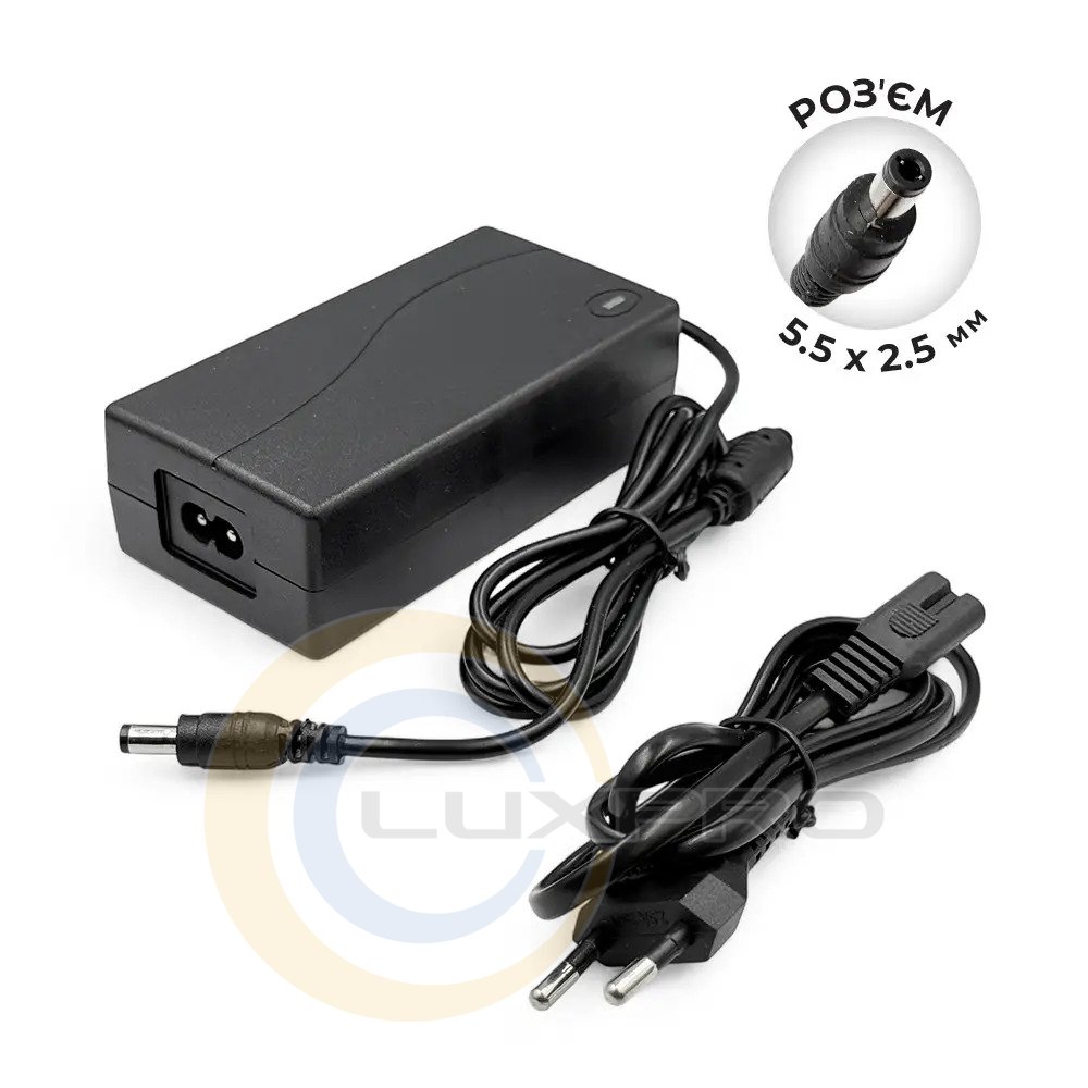 - Универсальная совместимость благодаря популярному формату разъема 5.5/2.5 мм.