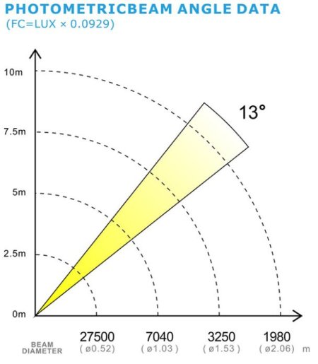 - угол раскрытия луча 13°;