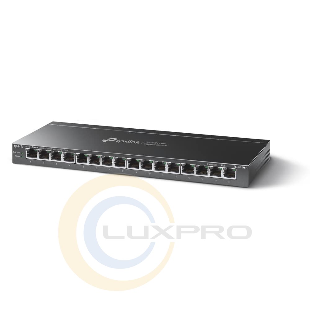 Коммутатор TL-SG116P 16xGE (16xPoE), 120Вт, Неуправляемый выбрать и приобрести от надежного производителя TP-Link по выгодной оптовой цене в интернет каталоге звукового оборудования ЛюксПро. Сетевое оборудование высшего качества с доставкой по Украине. Смотрите и заказывайте также Техника для офиса, дома в каталоге интернет магазина LuxPRO.