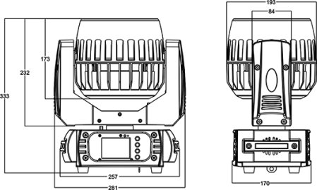 Входное напряжение:AC90/260V 50-60Hz, источник света: 7х15Вт 4-в-1 RGBW светодиодов, DMX512, 13/15 DMX каналов управления, master-slave, звуковая активация, 7 встроенных программ, потребляемая мощность: 135 Вт, размеры: 193х281х333 мм, вес: 6,4 кг.