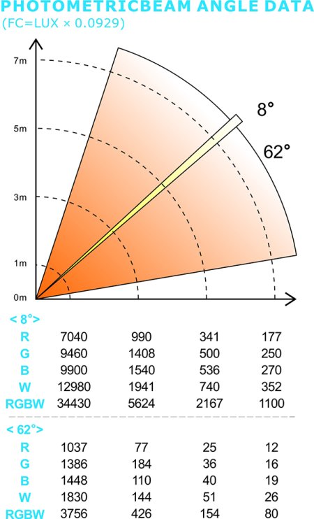 - Количество светодиодов: 7 * 15 Вт 4-IN-1 светодиодов RGBW