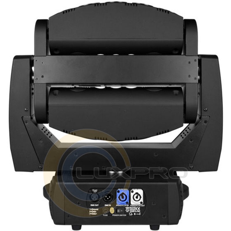 Входное напряжение: AC90/260V 50-60Hz, источник света: 10PCS CREE XLamp XML 4-В-1 10W светодиодов, DMX512, master-slave и звуковая активация, встроенные программы, 55/15/59 DMX каналов управления USITT DMX-512, потребляемая мощность: 155 Вт, размеры: 260х480х480 мм, вес: 13.82 кг.