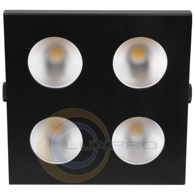BLINDER 4100S-CW - специально новый дизайн без мерцания для студийных помещений, состоящий из 4 холодных белых (5600K) светодиодных модулей COB, установленных в оптической системе с углом луча 30° (угол поля 100°). Каждый модуль COB управляется независимо. Он производит очень высокую светоотдачу с ультра-плавным регулированием яркости / диммера и даже полем. Светильник обеспечивает эффект стробирования с переменной скоростью, импульсный / случайный строб-эффект, встроенные запущенные программы и макроэффекты.