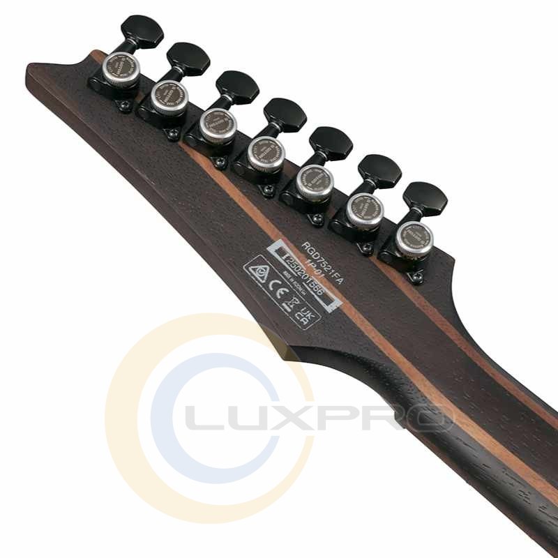 Электрогитара RGD721FA-WUF. Гриф Wizard II-7 из трех частей клена имеет тонкий, плоский и прочный профиль, гарантирующий стабильность и жесткость при высоком натяжении струн. Накладка из ятобы формирует насыщенные средние частоты и четкие верха. Смещенная инкрустация (Off-set white dot) обеспечивает удобную навигацию по грифу и современный вид.