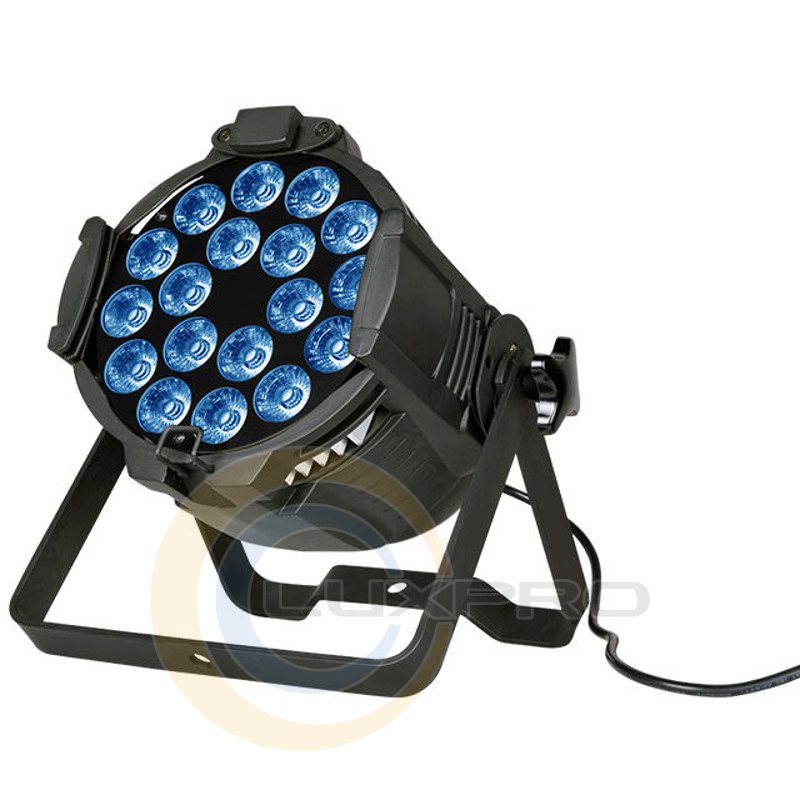 LEDPAR 1818 - очень мощный закрытый светодиодный прожектор. Он отличается отличным смешиванием цветов, бесшумным управлением и без мерцания. Светильники с встроенными внутренними программами и макросами. PAR также имеет оптимальный оптический дизайн, интегрированный с чрезвычайно эффективной алюминиевой системой радиатора.
