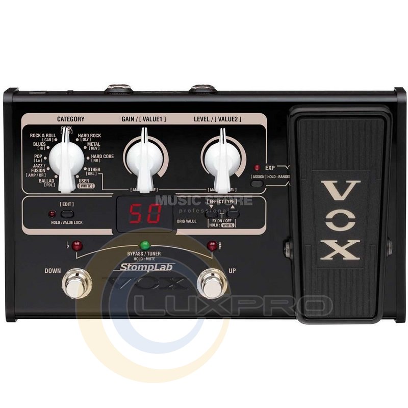 Гитарный процессор эффектов VOX STOMPLAB 2G легко-коммутируемое устройство, которое практически помещается в чехол для электрогитары, в своём арсенале содержит классические гитарные перегрузы VOX и оригинальные эффекты, которые Вы можете использовать при помощи встроенной педали экспрессии.Характеристики: