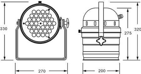 Входное напряжение: AC90/260V 50-60 Гц, источник света: 36 * 3 Вт 4-в-1 LED (RGBW), DMX512, master-slave и звуковая активация, встроенные программы, 8 DMX-каналов USITT DMX-512, потребляемая мощность: 110 Вт, размеры: 200х270х320 мм, вес: 2.5 кг.