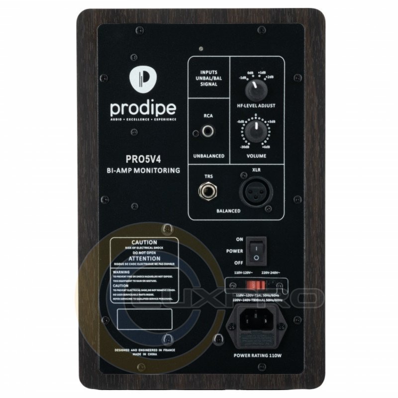 Особое внимание было уделено нейтральности и гармоничному балансу звука, что делает Prodipe Pro 5 V4 идеальным выбором для профессионального студийного использования. Активная фильтрация обеспечивает равномерное распределение частот без искажений, что способствует естественному звучанию. Для подключения на задней панели имеются балансные XLR и TRS 1/4” входы, а также небалансный RCA, а также регулятор высоких частот и ручка контроля громкости.