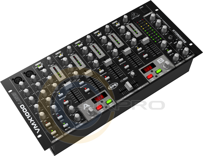 Behringer VMX1000USB - продвинутый 7-канальный микшерный пульт для диджеев. Пульт оснащен счётчиком темпа и аудиоинтерфейсом USB в рэковом исполнении. Имеет 7 входных каналов - 5 стерео и 2 микрофонных, эффект 3D-surround, фейдеры и кроссфейдер VCA. Встроенный USB интерфейс служит для записи и воспроизведения любых цифровых музыкальных файлов, совместим с PC и Mac. VCA кроссфейдер и сверхплавные фейдеры ULTRAGLIDE, выдерживающие до 500000 рабочих циклов, обеспечивают абсолютную надёжность.