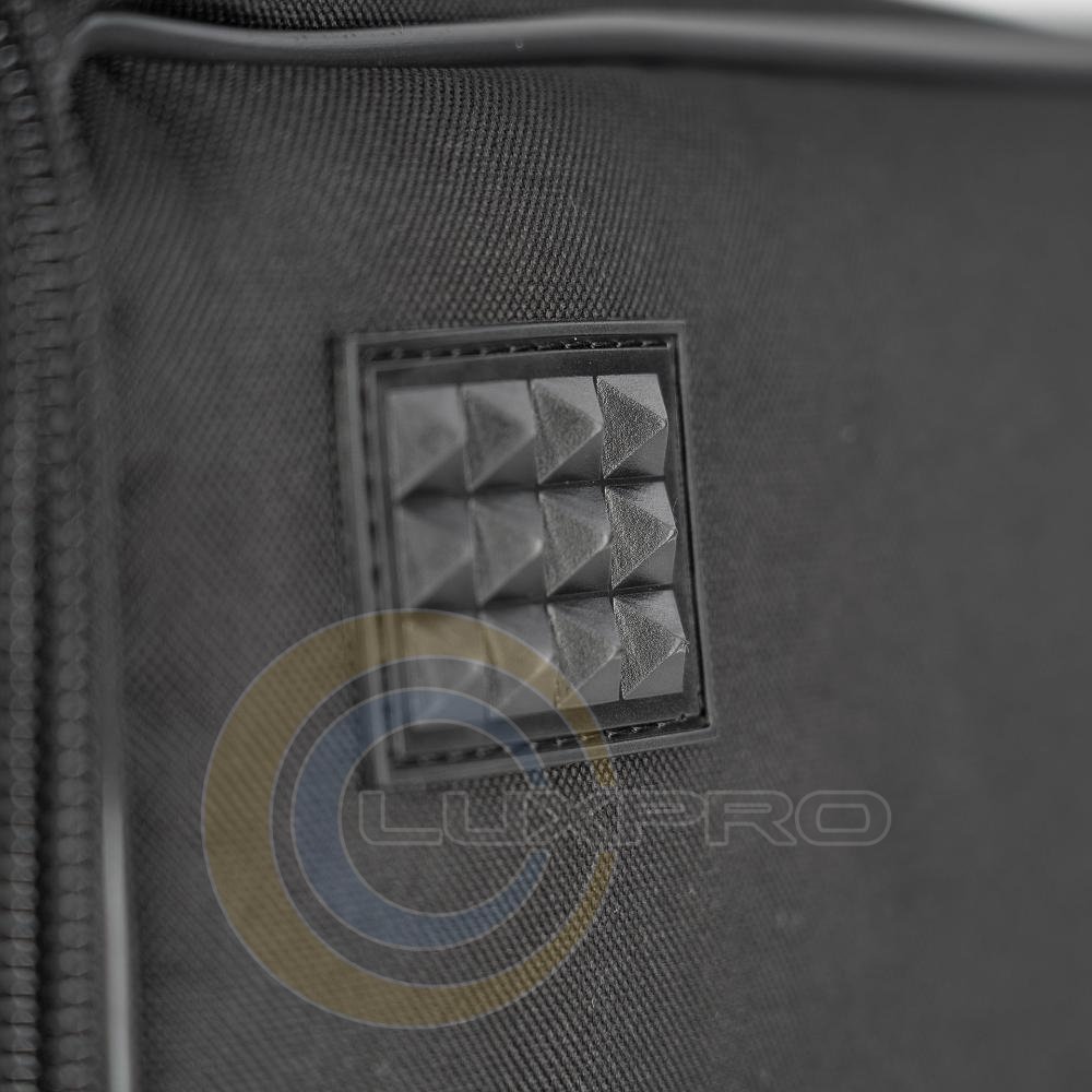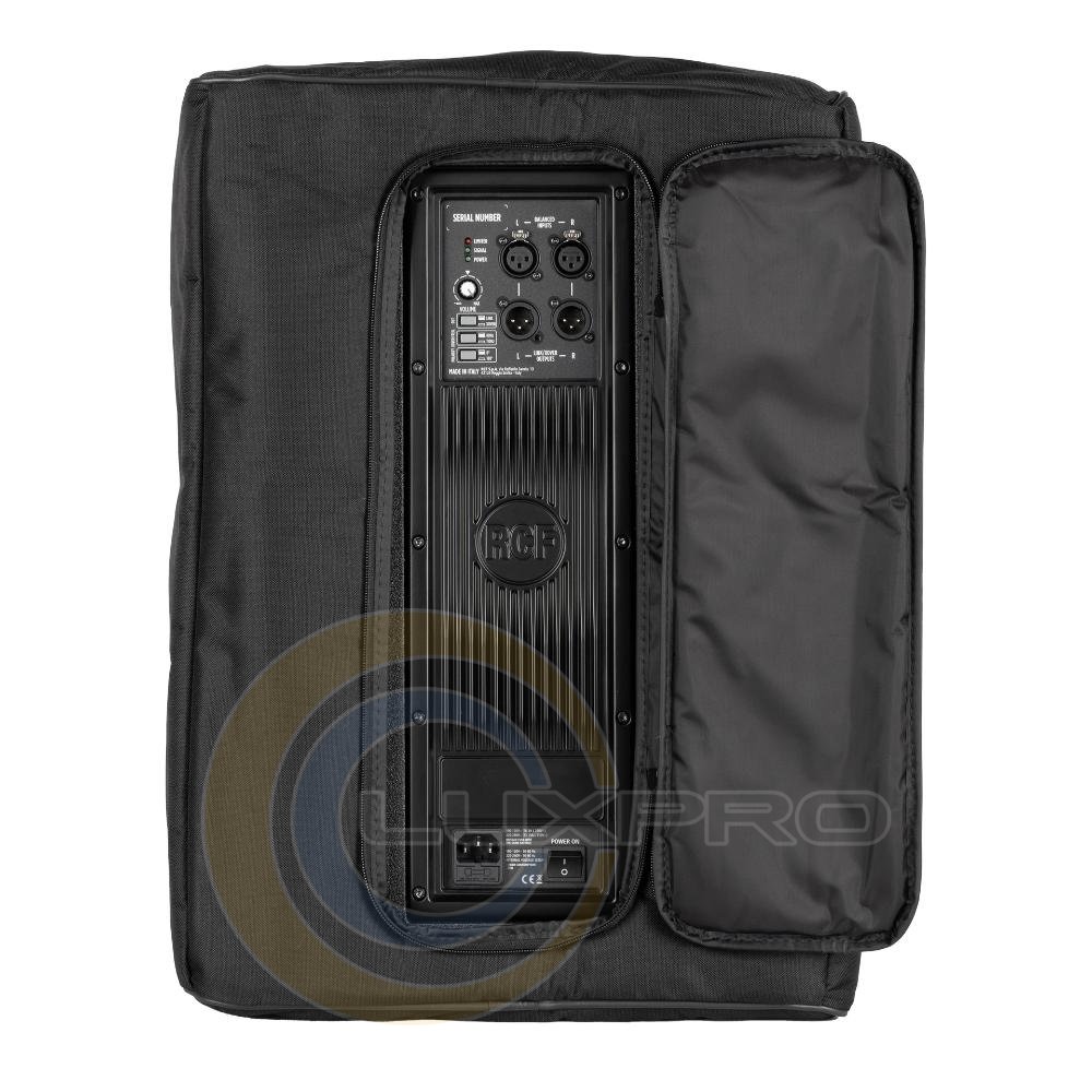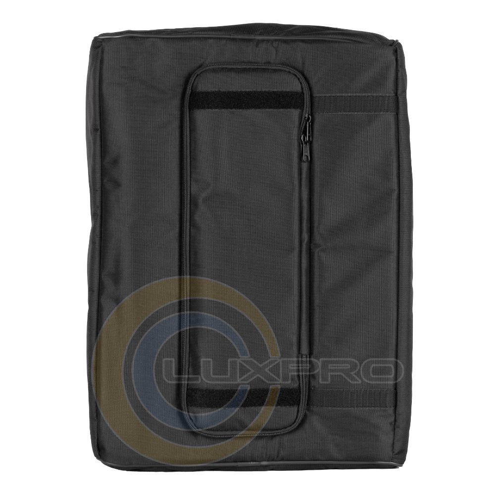 Мягкий чехол для защиты сабвуфера. Он изготовлен из прочной атмосферостойкой полиэстерной ткани, имеет вспененный резиновый наполнитель и застежки-молнии с липучками. Передняя часть чехла открывается и закрывается с помощью липучки с одной стороны. Чехол имеет несколько отверстий для ручек, задней панели подключения и крышки крепления на стойку.