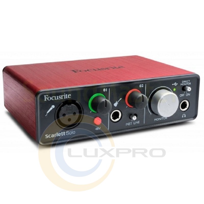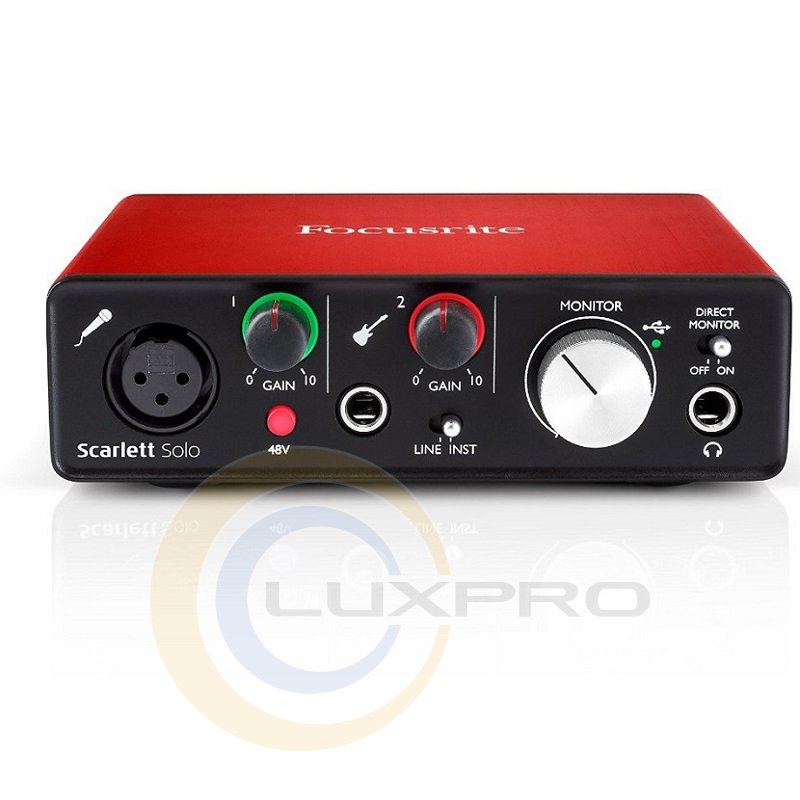 Ищете устройство, которое подарит вам великолепное качество звука на компьютере? Увлекаетесь звукозаписью и хотите найти оборудование, которое обеспечит запись музыки на высшем уровне? Тогда звуковая карта Focusrite Scarlett Solo создана именно для вас! Это устройство стало настоящим хитом продаж и не собирается сдавать свои позиции.Карта представляет собой инновационный аудио интерфейс Scarlett Solo и принадлежит к знаменитой линейке SB 2.0 интерфейсов Scarlett. Эта техника успела завоевать репутацию высокотехнологичного устройства с наличием всех функций, необходимых современному пользователю. Focusrite Scarlett Solo звуковая карта, купить которую можно у нас по недорогой цене, изменит ваше представление о качественном звуке.Звуковая карта выполнена в сочетании красного с черным цветом, имеет строгие формы и неброский внешний вид. Карта обладает небольшим весом, потому использовать ее будет еще комфортнее, чем приспособления старого поколения.С установкой данной карты вашему компьютеру будет обеспечен высококачественный звук без помех и шума, чем могут похвастаться далеко не все звуковые карты других производителей. Устройство обеспечивает отличное звучание не только в колонках, но и в наушниках. 2 специальных входа предназначаются для пользования микрофоном, который можно подключить через специальный XLR-вход и для электрогитары, подключив ее через TRS-вход.Передняя панель оснащена кнопкой, которая включает питание фантомного типа 48В. Здесь же размещаются регулятор громкости устройств и удобный стерео выход, через который вы подключите любимые наушники. Задняя сторона устройства имеет 2 выхода RCA, с помощью которых происходит подключение монитора, а также kensington lock.Компактные габариты звуковой карты делают ее удобной для эксплуатации вне дома, потому как подключение к электрической розетке не понадобится, можно воспользоваться USB шиной.Характеристики: