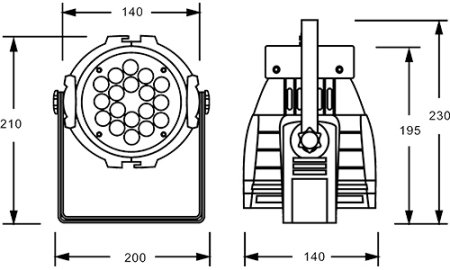 LEDPAR 36AM - прожектор в алюминиевом корпусе, компактный и легкий. Он оснащен светодиодами 18PCS 3W (R, G, B) с хорошей светоотдачей.