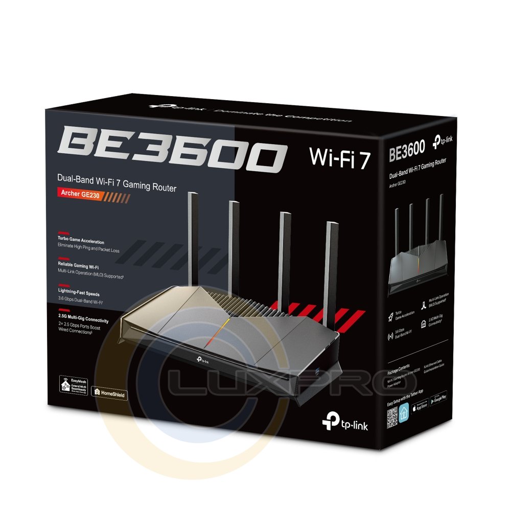 Маршрутизатор Archer GE230 BE3600, 3xGE LAN, 2.5xGE LAN, 2.5xGE WAN, 1xUSB3.0 MESH подобрать и купить от качественного производителя TP-Link по доступным оптовым ценам в магазине звукового оборудования https://luxpro.ua/. Маршрутизаторы на любой вкус с доставкой в любой уголок Киева. Самые лучшие предложения на Техника для офиса, дома в каталоге https://luxpro.ua/. Напишите нашим менеджерам на телефонный номер +38(067)247-7948 и мы оперативно доставим Техника для офиса, дома клиентам в регионах: Мариуполь, Чернигов, Хмельницкий