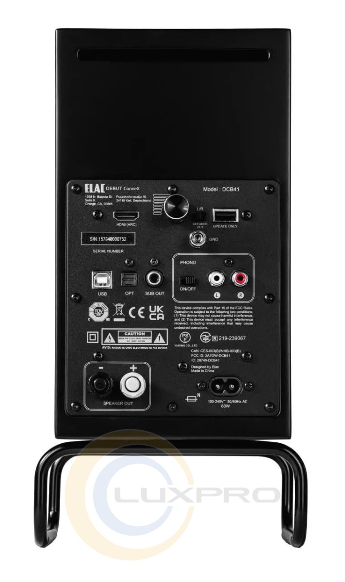 ConneX включает в себя запатентованную технологию XBass Enhancer от Elac, обеспечивающую лучшее расширение низких частот и повышенную выходную мощность (можно отключить). Для лучшего воспроизведения низких частот и минимизации шума вентиляции фазоинвертор DCB41 направлен назад и выполнен в конфигурации «S».