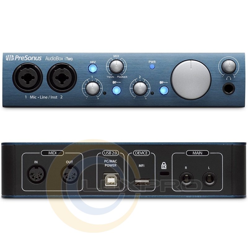 PRESONUS AUDIOBOX ITWO - мобильный аудиоинтерфейс, разработанный под шину USB 2.0 и iOS-устройства, звуковая карта имеет 2 микрофонных/инструментальных входа, 2 выхода, стереовыход для наушников, MIDI-вход и выход. Аудиоинтерфейс PRESONUS AUDIOBOX ITWO поддерживает частоты дискретизации до 96 кГц и 24 битную разрядность.Конденсаторный микрофон PRESONUS M7