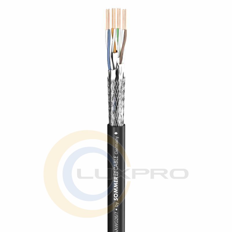 Патч-кабель SC-MERCATOR CAT.6a HIGHFLEX с наружным диаметром всего 6 мм и минимальным радиусом изгиба менее 20 мм идеально подходит для прокладки в узких патч-панелях, телекоммуникационных шкафах и туровых речных системах. Несмотря на компактные размеры, кабель имеет прочную ПВХ-оболочку и конструкцию S/FTP с оплеткой и парным экранированием из AL/PT-фольги вокруг жил 4x2xAWG26/7. Такая конструкция обеспечивает соответствие стандарту CAT.6a и стабильной работе на частотах до 500 МГц.