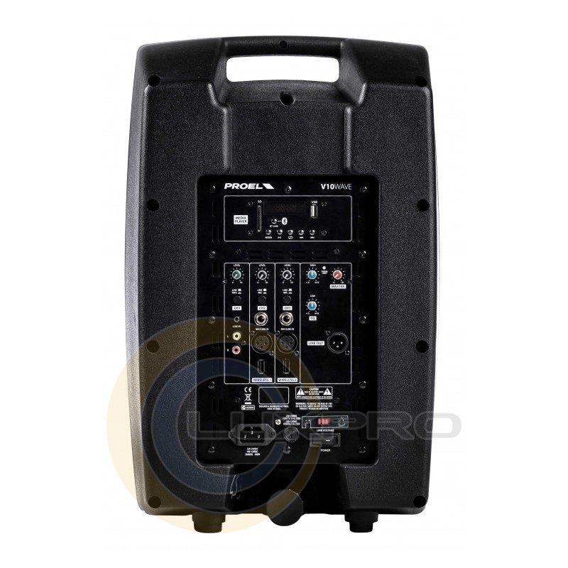 Proel V10 WAVE – это портативная активная акустическая система мощностью 600 Вт класса D, 3-канальный микшер и медиаплеер. Благодаря поддержке Bluetooth, USB, SD и двух беспроводных микрофонов 2,4 ГГц, она обеспечивает универсальное использование как для выступлений, так и для музыкальных мероприятий. Система обеспечивает мощный и чистый звук благодаря высококачественному 10-дюймовому низкочастотному динамику и 1-дюймовому неодимовому драйверу.Особенности:
