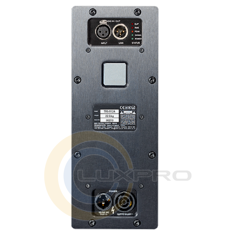 Задняя соединительная пластина имеет два входных и два соединительных разъема XLR, а также вход powerCON®TRUE1 и соединительную линию в стандартной комплектации.