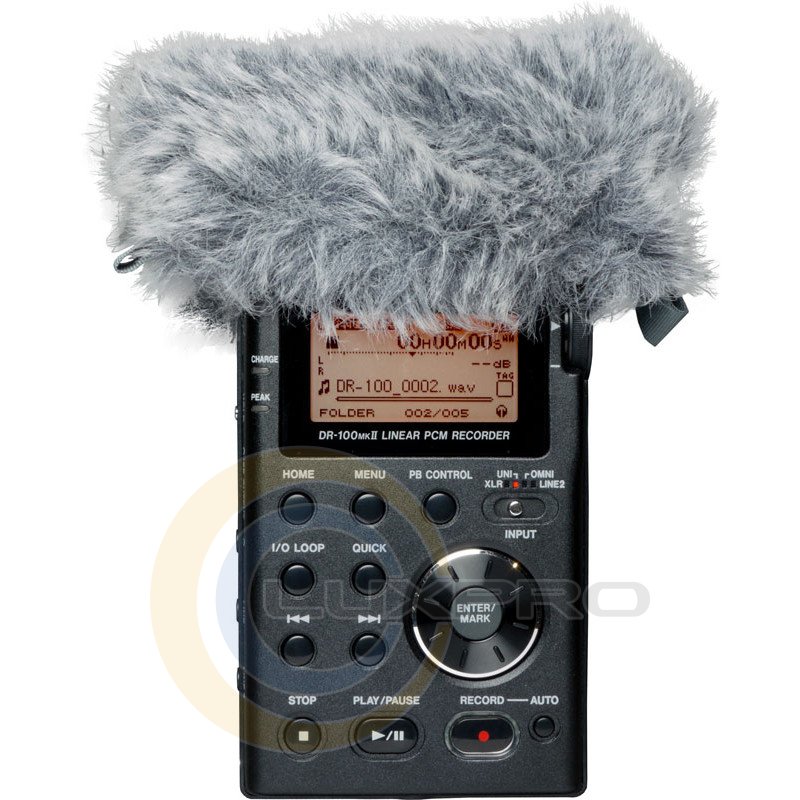 Меховая ветрозащита длиной 340 мм для микрофонов-«пушек», предназначена для защиты от шума ветра. Может легко быть одета поверх поролоновой ветрозащиты. Ветрозащита из исскуственного меха может использоваться с DR-07MKII и DR-40, даже если микрофоны установлены в положение AB.