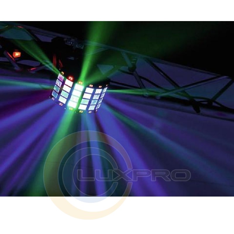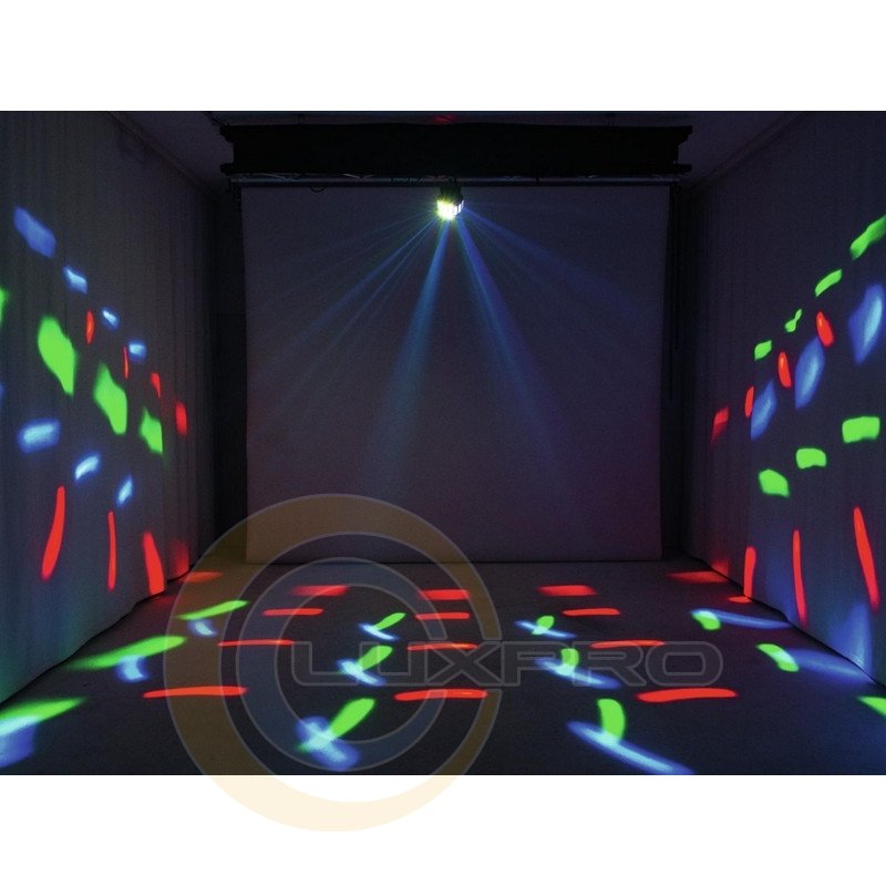 - Оснащен светодиодами 3 x 3 Вт красные, зеленые и синие и 14 x SMD белых светодиодов.