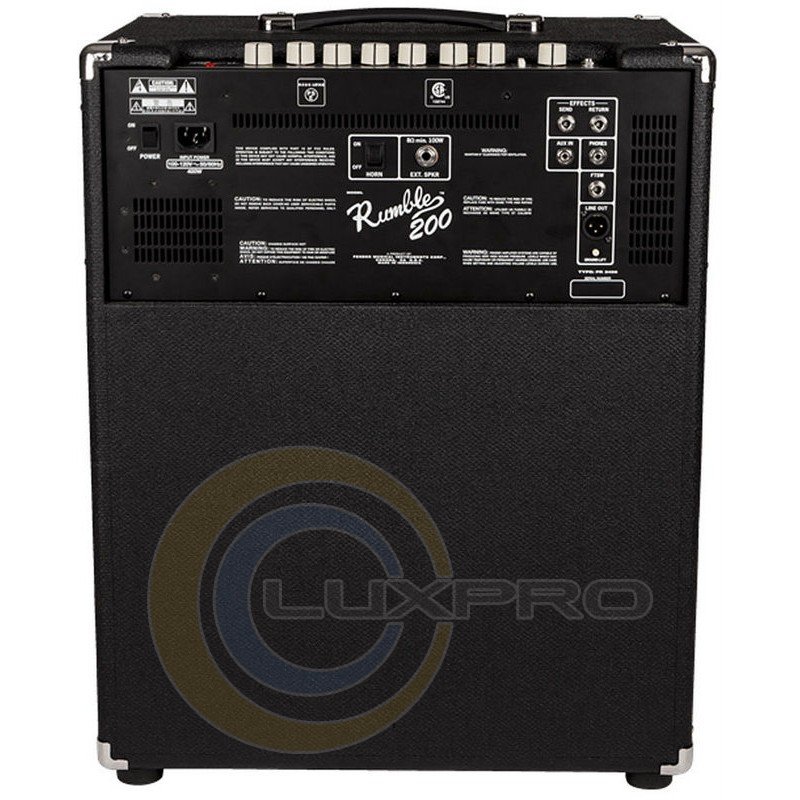FENDER RUMBLE 200 COMBO - комбоусилитель для бас-гитары, Class-D, 1х15" Eminence, мощность 200 Ватт, 4-полосный эквалайзер, выход на наушники, AUX-вход, выход для подключения дополнительного кабинета.Характеристики: