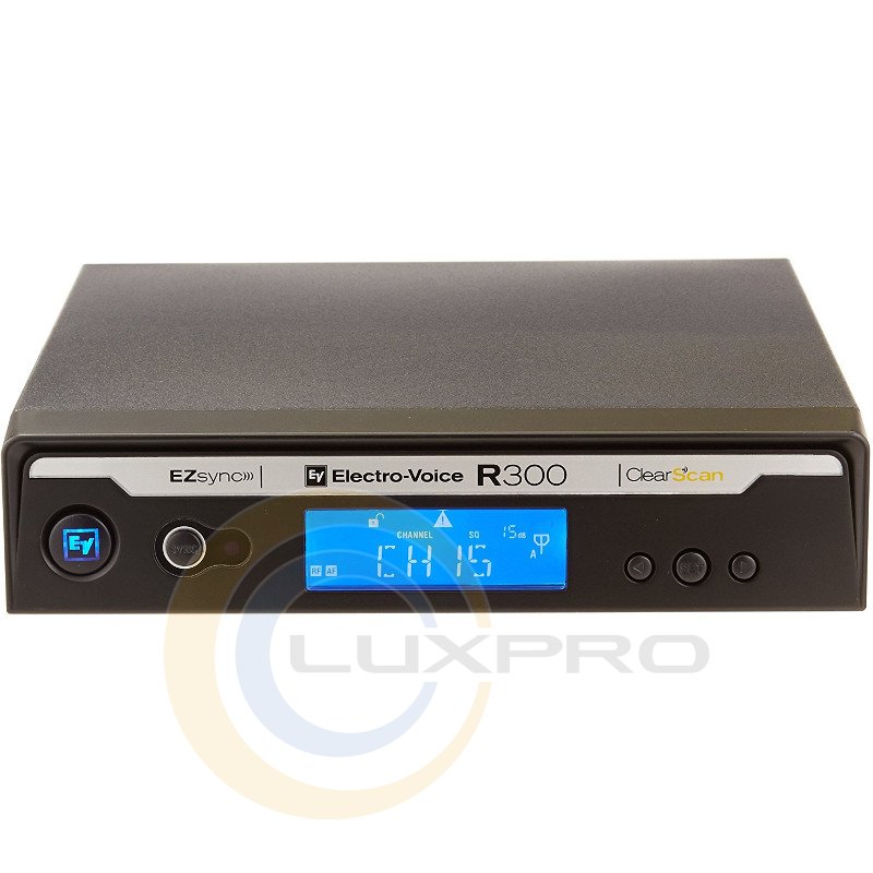 В системе R300 используется система автоматической настройки несущей частоты Electro-Voice ClearScan™, проверенная многолетним опытом использования в многочисленных турах и инсталляциях. Нажатием одной кнопки на приемнике включается сканирование 32 предустановленных радиоканалов, из которых ClearScan™ выбирает самый чистый. Это позволяет с уверенностью работать в современном переполненном эфире без шума даже на больших дистанциях.
