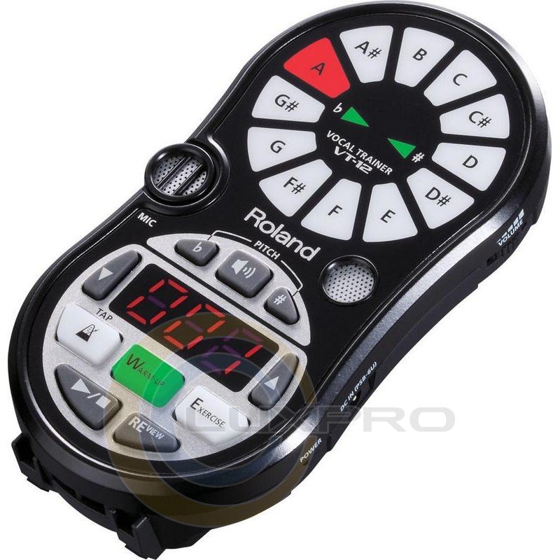 Вокальный тренажёр / тюнер / метроном ROLAND VT12BK имеет карманный размер; он поможет вокалисту в музыкальной школе или дома, в студии звукозаписи или гримерке перед выходом на сцену. ROLAND VT12BK - это электронный инструктор, который всегда с вами. Огромное разнообразие встроенных упражнений позволят разогреть вокал для концерта или оттачивать совершенство своего голоса. Тюнер ROLAND VT12BK в реальном времени анализирует высоту вашего голоса и визуализирует улучшения. Определитель высоты определяет ноты даже двух певцов одновременно (в равномерно-темперированном или натуральном строе). Вокальный тренажёр ROLAND VT12BK также содержит курс по методике Беркли, включающий треки аккомпанемента (по разрешению The Publishing Division of Berklee College of Music), а также 50 этюдов классических вокальных уроков Concone.По мере Вашего пения ROLAND VT12BK отслеживает высоту и тут же показывает ее на точно срабатывающем определите высоты. Высотометр горит ярче, чем точнее вы поете правильную ноту, и темнеет при удалении от нее. Если воспроизводится эталонный голос, то отображаются его названия нот. Нажав кнопку, можно воспроизвести эталонную высоту в диапазоне двух октав. Помимо самотоятельных занятий, этот прибор может служить отличным подспорьем для учителей вокала, позволяя визуализировать и разнообразить процесс обучения.Не обязательно заниматься с ROLAND VT12BK в одиночку. Можно упражняться с учителем или партнером. Тренажёр ROLAND VT12BK может определить 2 голоса одновременно, показывая названия нот каждого певца. Высота определяется в трех режимах: MONO EQUAL (высота одного голоса определяется в равномерно-темперированном строе), CHORD EQUAL (2 голоса определяются в равномерно-темперированном строе), CHORD JUST (2 голоса определяются в натуральном строе). Таким образом можно заниматься участникам хора или групп a capella.Точность интонирования важна, но не менее важно и чувство ритма. Встроенный в ROLAND VT12BK метроном - отличное подспорье. Темп можно выбрать вручную или задать его римичным постукиванием. Во время занятий вокалом для разработки чувства метра учитель может попросить студентов прохлопать первые доли или другие ритмические рисунки вместе с метрономом. Одновременно работает тюнер, так что можно упражняться пением правильных нот, следуя за метрономом.Купив ROLAND VT12BK, вокалист получает еще и книгу с аудиопримерами, разработанную во всемирно известном музыкальном колледже Беркли. Иллюстрированное издание "Постановка современного вокала" учит избегать излишнего физического напряжения, управлению дыханием, заботе о своем вокале и др. Встроенное аудио содержат упражения по разогреву голоса, включая гаммы, нисходящие квинтовые глиссандо и другие распевки. ROLAND VT12BK содержит встроенные пьесы-упражения с аккомпанементом во множестве жанров. Также представлены записи минус-один, а также упражения для многоголосого пения в ансамбле; выбирая нужный трек, можно подобрать, какая из партий должна быть отключена. Для разогрева и базисных упражнений ROLAND VT12BK одновременно показывает высоту эталонного вокала в записи и вашего пения.Упражнения для классического вокала Concone Op. 9 Fifty Lessons используются во всем мире. Каждый из 50 уроков содержит запись мелодии с указанием высоты, а также аккомпанемент на фортепиано для среднего голоса. При желании можно отключить мелодию и петь только под запись фортепиано.При расп