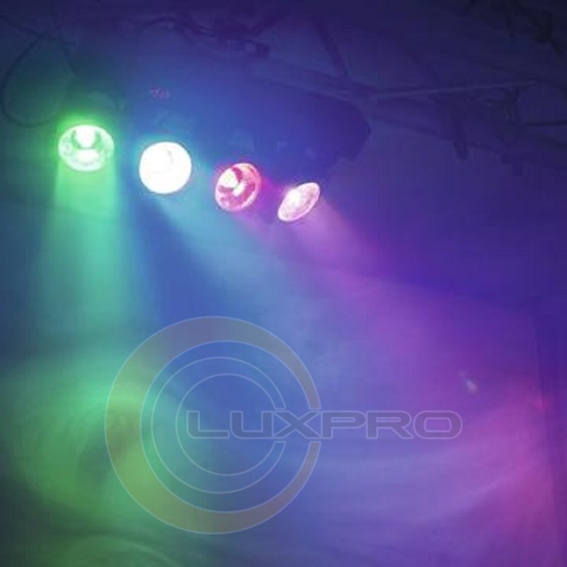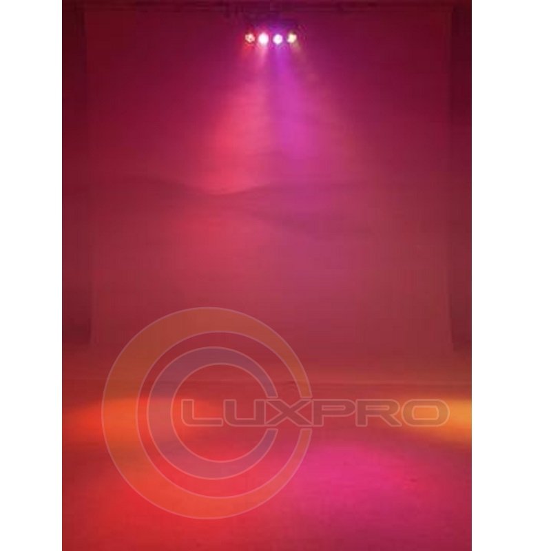 - Функции: система цветосмешения RGBW, цветовые пресеты, встроенные программы, стробоскоп с переменной скоростью, диммер, звуковое управление, функция ведущий/ведомый.
