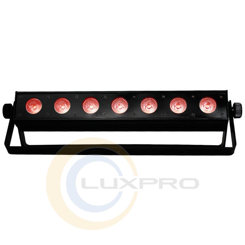 Входное напряжение: AC90/260V 50-60 Гц, источник света: 7 * 10 Вт 4-в-1 светодиодах (RGBW), DMX512, master-slave и звуковая активация, встроенные программы, DMX-канал, размеры: 76х500х163 мм, вес: 3 кг.Характеристики: