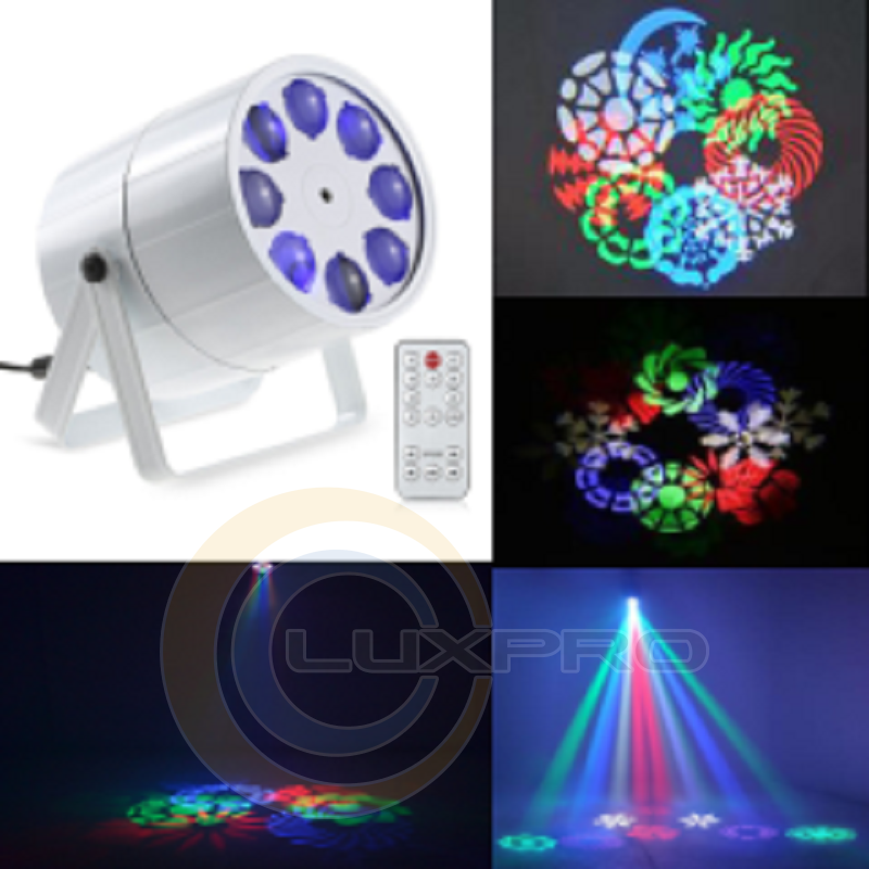 Светодиодный прибор GOBO FLOWER 8 LED - обеспечивает неимоверную яркость, красочность и насыщенность гобо-калейдоскопический-цветок. При его использовании можно увидеть не стандартные точки, а великолепные цветные гобо узоры, которые создают эффект калейдоскопически двигающихся сквозь призму гобо трафаретов с пульсацией и изменением цвета.
