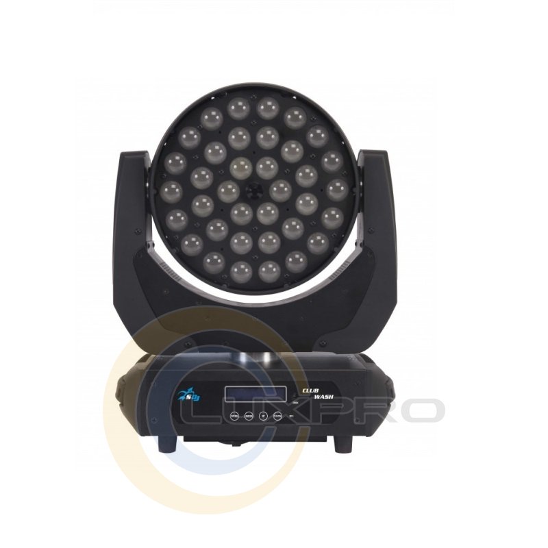 Прибор полного вращения SG СLUB WASH является мощным и легким компактным лучевым прожектором, который идеально подходит для применения на небольших мероприятиях, в клубах и театрах, где нет необходимости в более дорогих высокопроизводительных моделей. Прожектор работающий с газоразрядной лампой, благодаря использованию 36 до 10 Вт высокой мощности светодиодных источников с полноцветным RGBW / FC и электронным зумом с переменным углом открытия от 8 ° до 50 °.