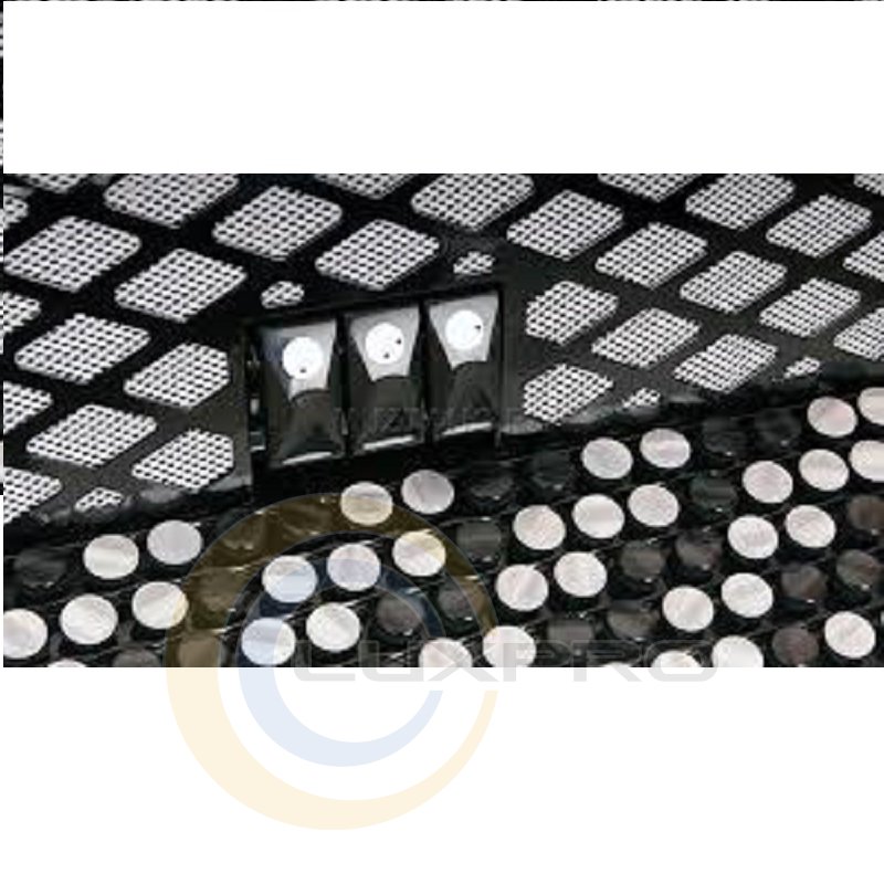 - Акомпанемент (басов) от ноты "фа" контроктавы до ноты "ми" большой октавы с одновременным звучанием в четырех октавах.