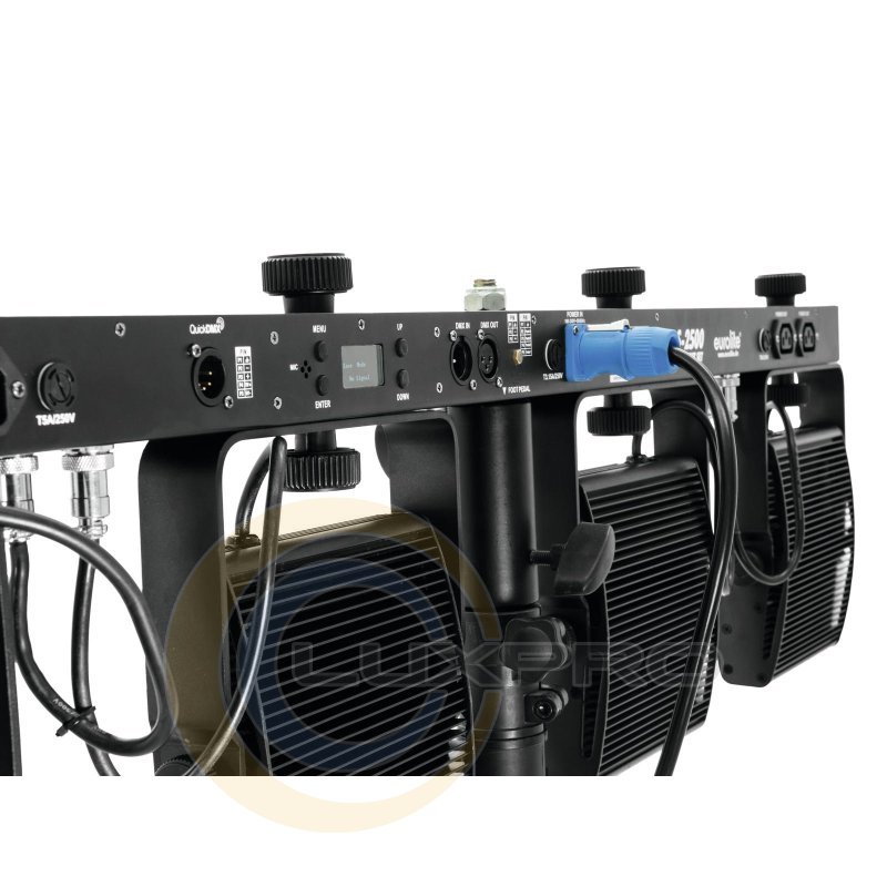 Бренд Eurolite от Steinigke Showtechic GmbH. Перекладина с встроенным блоком управления DMX. Автоматический режим, управление музыкой, эффект стробоскопа. Реагирует на звук с помощью встроенного микрофона с настройкой чувствительности. Поддержка QuickDMX для беспроводной передачи сигнала DMX512. Адресация и настройка через панель управления с дисплеем OLED.Идеально подходит для проведения мероприятий как на открытом воздухе, так и в закрытых помещениях.Характеристики: