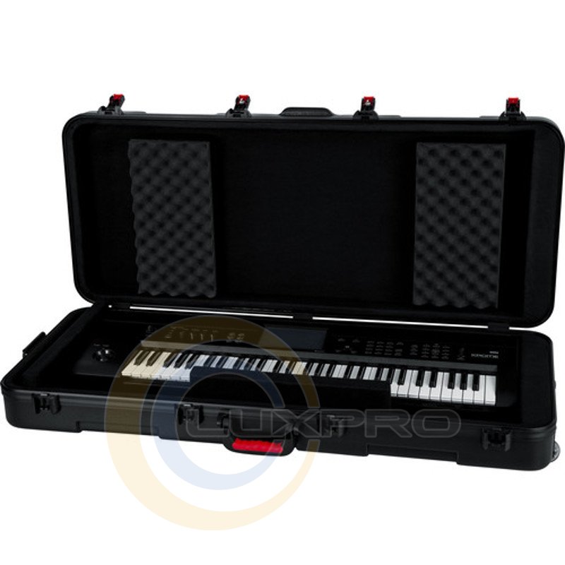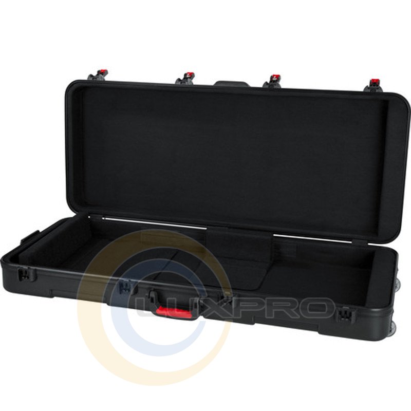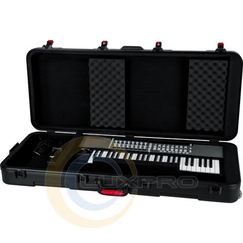 GTSA-KEY61 - жесткий кейс для синтезатора на транспортных колесах. В качестве материала для изготовления используется сверхпрочный формованный полиэтилен ATA, который на сегодняшний день является одним из самых стойких видов пластиков. Имеются страиваемые линейные колеса, эргономичная верхняя ручка с резиновым захватом и две специальные защелки, которые позволяют безопасно заблокировать кейс во время транспортировки инструмента.