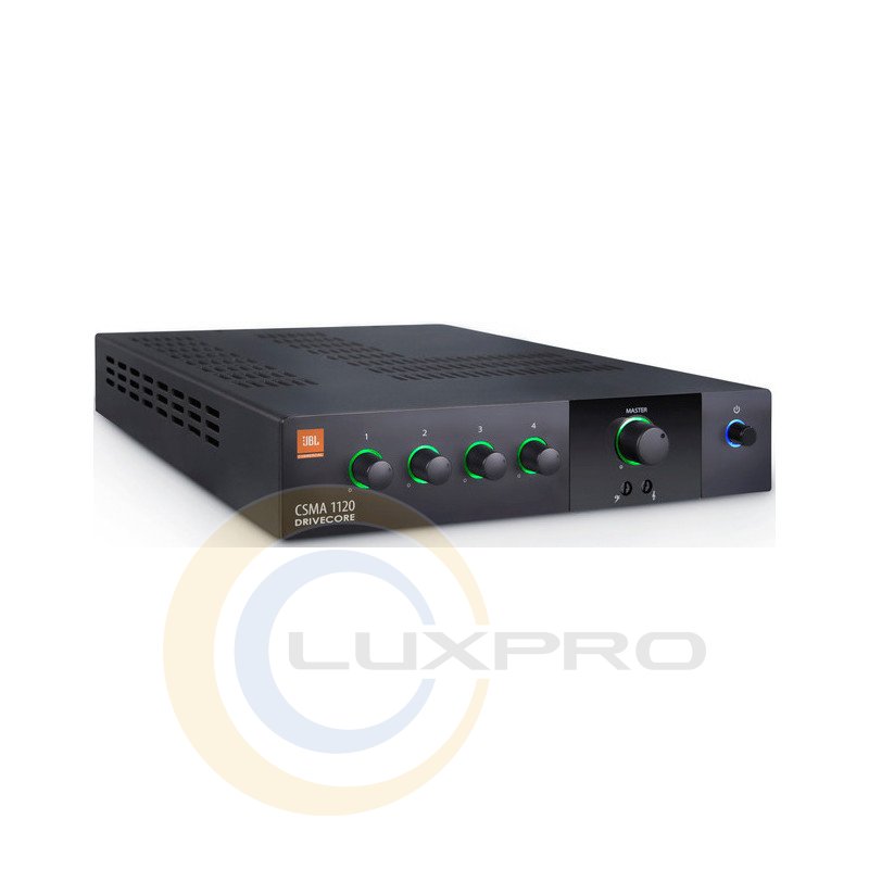 JBL CSMA 1120 – мощный инсталляционный микшерный пульт. Микшер-усилитель JBL CSMA 1120 из серии CSMA – это профессиональный микшер со стильным внешним обликом, разработанный для коммерческих звуковых инсталляций. Использование технологии Crown DriveCore позволило значительно уменьшить вес и габариты прибора – все микшеры-усилители обладают высокой эффективностью в работе и занимают всего один юнит в стандартном рэке.Микшерный пульт JBL CSMA 1120 предлагает вам невероятную простоту использования с удобной и понятной передней панелью, которая снабжена только регуляторами громкости для каждого канала, ручкой общей громкости, независимыми регуляторами высоких и низких частот для каждого выходного канала, а также кнопкой включения/выключения. Все кнопки громкости подсвечены светодиодным кольцом, чтобы вы с легкостью смогли сориентироваться среди регуляторов в темноте.Усилитель JBL CSMA 1120 может работать на 8 и 4 Ом нагрузках и может быть использован в 70 В и 100 В линиях, без необходимости в отдельном трансформаторе. JBL CSMA 1120 оснащён балансными микрофонными / линейными, несимметричными RCA входами и выходами на громкоговорители, как и все модели данной серии JBL CSMA 1120 включают разъемы RJ45 для использования с настенными регуляторами громкости JBL CSR-V. Микшерный пульт оснащён универсальным блоком питания с напряжением от 100 до 240 В переменного тока, 50 / 60 Гц.Микшерный пульт JBL CSMA 1120 изготовлен на бессвинцовом стандарте ROHS, с использованием переработанных металлов, и энергосберегающих порошковых покрытий. А технология DriveCore позволяет уменьшить расход энергии и приводит к более мощной производительности приборов – до 80 процентов увеличения потенциала, по сравнению с предыдущими моделями линейки.Характеристики: