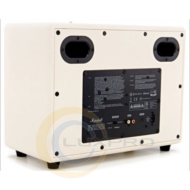 Активная портативная акустическая система MARSHALL WOBURN CREAM с питанием от сети предназначена радовать не только меломанов, но и эстетов. Одной из наиболее главных особенностей данной модели является необычный винтажный дизайн. На панели расположены индикаторы входящего сигнала и 3.5 мм line-in, куда можно подключить гаджеты, не поддерживающие беспроводную связь, посредством двухстороннего шнура с позолоченными штекерами «3,5 мм – 3,5 мм». Подключая более весомую технику, вам придется воспользоваться RCA- входом сзади. В любом случае, что бы вы ни подключали, ноутбук, смартфон или другой гаджет, качество звука не пострадает.Акустика MARSHALL WOBURN CREAM имеет 2 динамика по 20 Вт на высокой частоте и низкочастотный 5 1/4" сабвуфер в 50 Вт работают в диапазоне 35 - 22 000 Гц. Вуфер обладает мягкими прорезиненными подвесами и диффузором из пропитанной ткани, магнитная система скрыта экраном. Беспроводное соединение обеспечивается Bluetooth 4.0, масса составляет 7900 гр.Питание акустики осуществляется от сети и предполагается два режима ожидания: энергосберегающий и стандартный. Акустическая система MARSHALL WOBURN CREAM имеет качественно виниловую отделку. Благодаря внешнему оформлению под старинку и большому элегантному логотипу бренда выглядит АС очень изысканно. Дополняет ретро-дизайн колонки эффектная панель управления с классическими регуляторами и включателем. С такой стилистикой портативная аудиоустановка является эстетически ценным элементом в любом интерьере.Акустическая система MARSHALL WOBURN CREAM имеет всё необходимое для прослушивания музыки любого стиля. Оптический аудиовход, позволяет подключать цифровые источники сигнала, такие как телевизор, Apple TV, AirPort Express, плеер с жестким диском, спутниковый или кабельный ресивер и т. д. Совместимость имеется только с PCM-стерео.Выходное звучание Marshall Woburn приятно удивит аудиофилов мощной и насыщенной сценой. Двухканальная колонка имеет пиковую суммарную мощность 140 Вт, при этом низкие частоты отличаются приятным глубоким басом, а верха — чистотой и хорошей детализацией. Наиболее правдоподобное воспроизведение аудиокомпозиций акустика обеспечивает с помощью входов RCA и качественного источника.Характеристики: