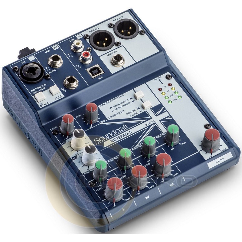 SOUNDCRAFT Notepad-5 - компактный 5-канальный микшерный пульт, который предоставляет легендарное звучание Soundcraft для вашей музыки, подкастов или видео. Микшер SOUNDCRAFT Notepad-5 сочетает в себе профессиональные аналоговые компоненты, известную цифровую обработку сигналов HARMAN и встроенный USB-аудиоинтерфейс для использования с вашим любимым программным обеспечением для редактирования на Mac или ПК. Независимо от того, являетесь вы певцом или подкастером, Notepad предлагает лучшие в своем классе функции, в числе которых известные микрофонные предусилители Soundcraft.Микшеры SOUNDCRAFT серии Notepad продолжают эту традицию вместе с профессиональными микрофонными предусилителями, удобными разъемами XLR и 1/4", а также прочными металлическими корпусами, которые выдержат испытание временем.Наличие двухполосного эквалайзера на канале 1 обеспечивает высокий уровень удобства настройки, который зачастую встречается исключительно в больших консолях. Поворотный регулятор уровня сигнала в наушниках позволяет быстро и легко настроить персональный мониторинг, в то время как ручка Master со светодиодной индикацией обеспечивает точный контроль над основным выходным сигналом. Предназначенная для домашних студий, репетиций, живых выступлений и создания подкастов, серия Notepad предлагает карту управления, знакомую профессионалам в области аудио, и в то же время удобную для новичков.Компактные микшеры Notepad легко помещаются в транспортировочные сумки и предоставляют множество возможностей для музыкальных сессий, репетиций и концертов. Эти устройства спроектированы таким образом, чтобы обеспечить высокую звуковую производительность Soundcraft и позволить вам работать с любимым оборудованием, таким как микрофоны, гитары, клавишные и многое другое.Комбинация высококачественных компонентов Soundcraft и встроенного 2 х 2 USB-аудиоинтерфейса делают SOUNDCRAFT Notepad-5 идеальным инструментом для подкастинга. Легко записывайте, редактируйте и воспроизводите собственные проекты при помощи любимого программного обеспечения. От захвата монологов до интервью с несколькими участниками дискуссии, микшеры Notepad призваны помочь поделиться собственными идеями с миром.Характеристики: